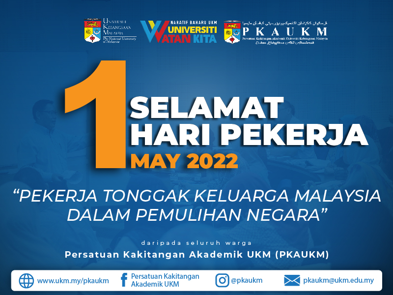 Selamat Menyambut Hari Pekerja Persatuan Kakitangan Akademik UKM (PKAUKM) mengucapkan Selamat Menyambut Hari Pekerja. “Pekerja Tonggak Keluarga Malaysia Dalam Pemulihan Negara” #SelamatHariPekerja #LabourDay #pkaukm #ukm