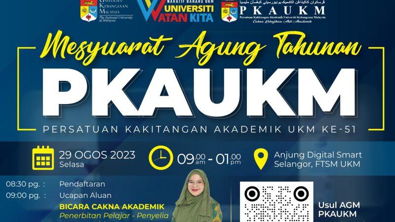 Mesyuarat Agung Tahunan PKAUKM yang ke-51 akan diadakan pada 29 Ogos 2023 bertempat di Anjung Digital Smart Selangor FTSM UKM. Semua warga PKAUKM dijemput hadir. …