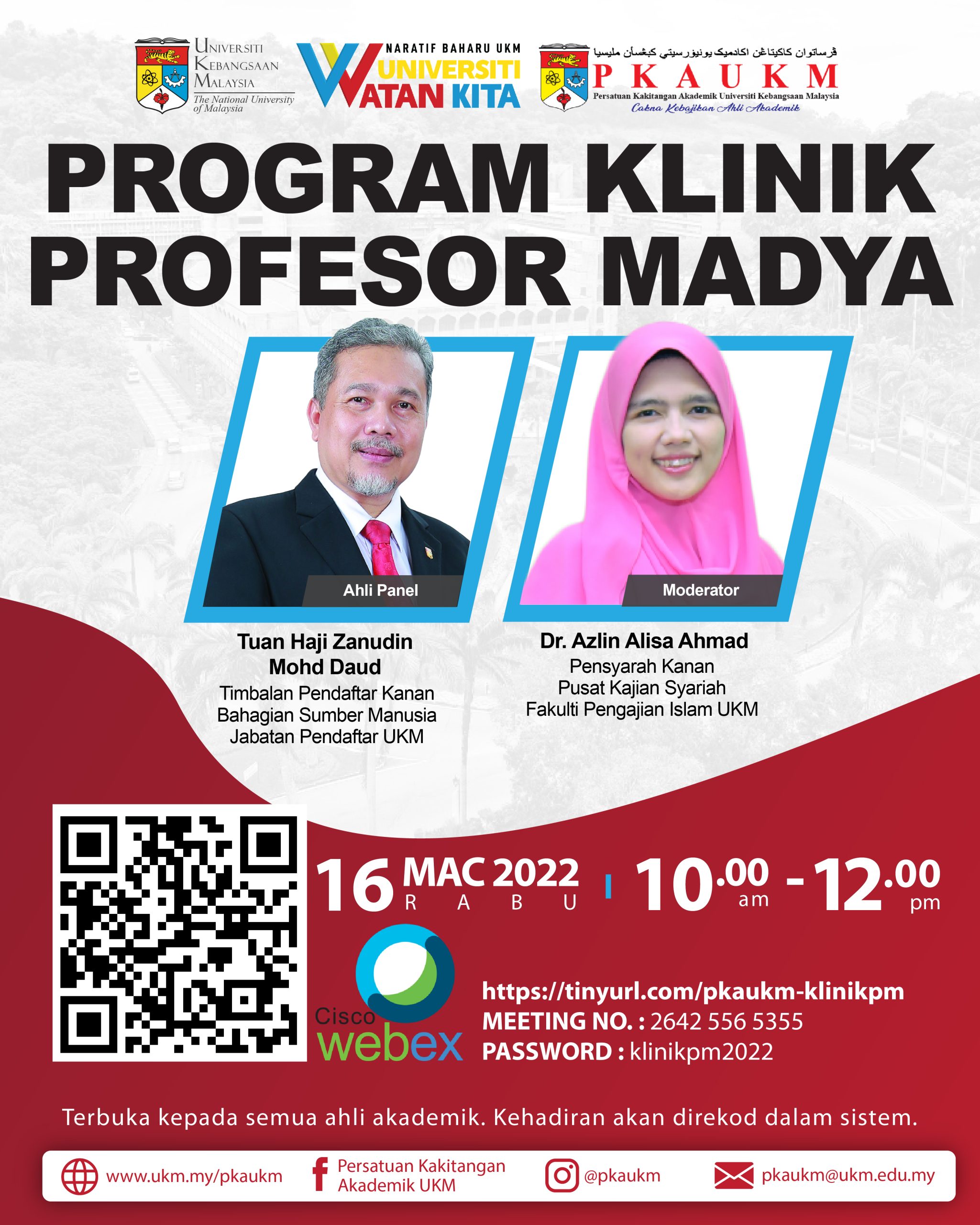 PKAUKM akan menganjurkan Program “Klinik Profesor Madya” seperti maklumat berikut : Tarikh: 16 Mac 2022 (Rabu) Masa: 10.00 pagi – 12.00 tengah hari Platform : …