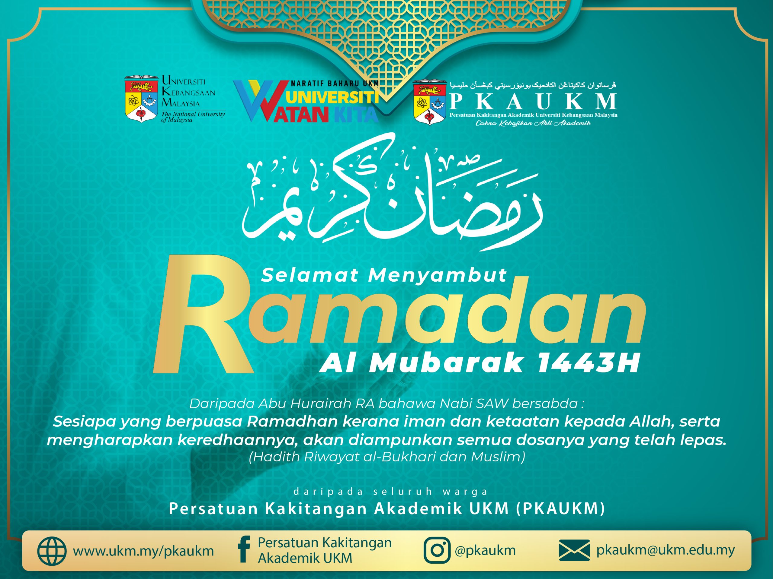 Selamat menyambut Ramadan Al-Mubarak dan selamat menunaikan ibadah puasa kepada warga PKAUKM dan seluruh umat Islam #ramadan1443H #Ramadan #PKAUKM #UKM