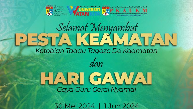 Persatuan Kakitangan Akademik UKM (PKAUKM) mengucapkan Selamat Menyambut Pesta Keamatan dan Hari Gawai 2024. “Kotobian Tadau Tagazo Do Kaamatan, Gayu Guru Gerai Nyamai!” Semoga perayaan …
