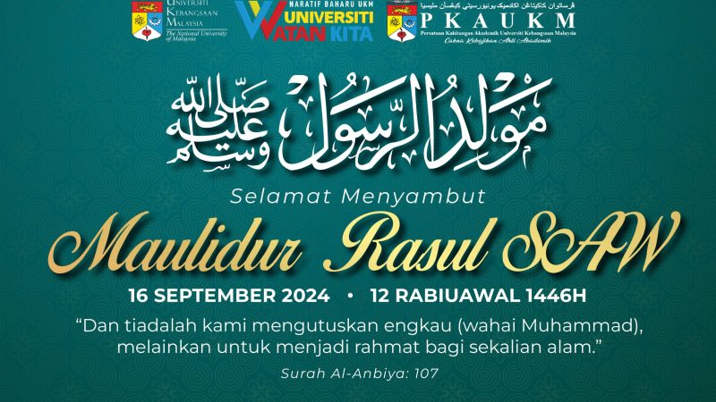 Persatuan Kakitangan Akademik UKM (PKAUKM) mengucapkan Selamat Menyambut Maulidur Rasul SAW. “Dan tiadalah kami mengutuskan engkau (wahai Muhammad), melainkan untuk menjadi rahmat bagi sekalian alam.” …