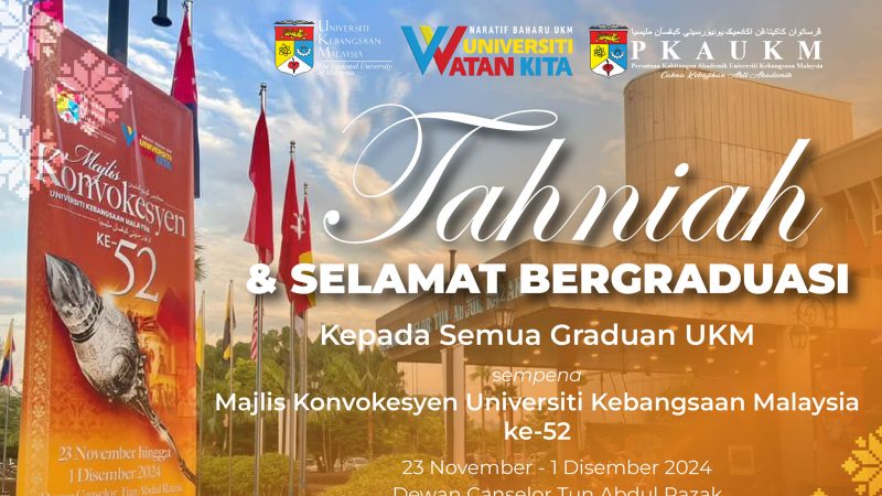 TAHNIAH DAN SELAMAT BERGRADUASI Kepada semua graduan Universiti Kebangsaan Malaysia (UKM) sempena Majlis Konvokesyen UKM ke-52. daripada Persatuan Kakitangan Akademik UKM (PKAUKM) #konvoukm52 #GraduanUKM #UKM …