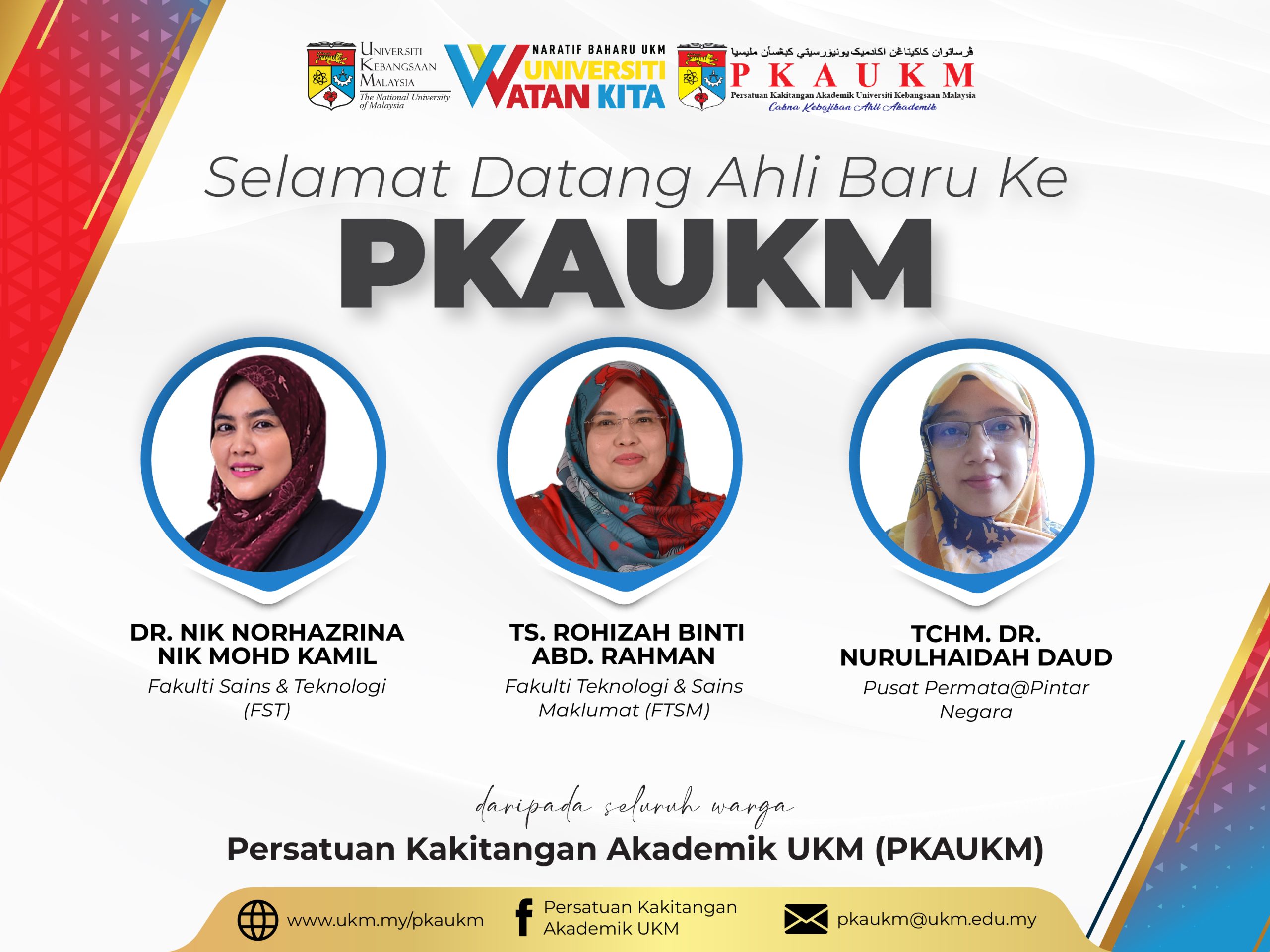 Selamat Datang Ahli Baru PKAUKM Persatuan Kakitangan Akademik UKM (PKAUKM) mengucapkan SELAMAT DATANG kepada ahli-ahli baru. Semoga dengan penyertaan anda semua bersama persatuan ini akan terus bergerak maju dan cemerlang dalam pelbagai aspek. #pkaukm #ukm #caknakebajikanahliakademi