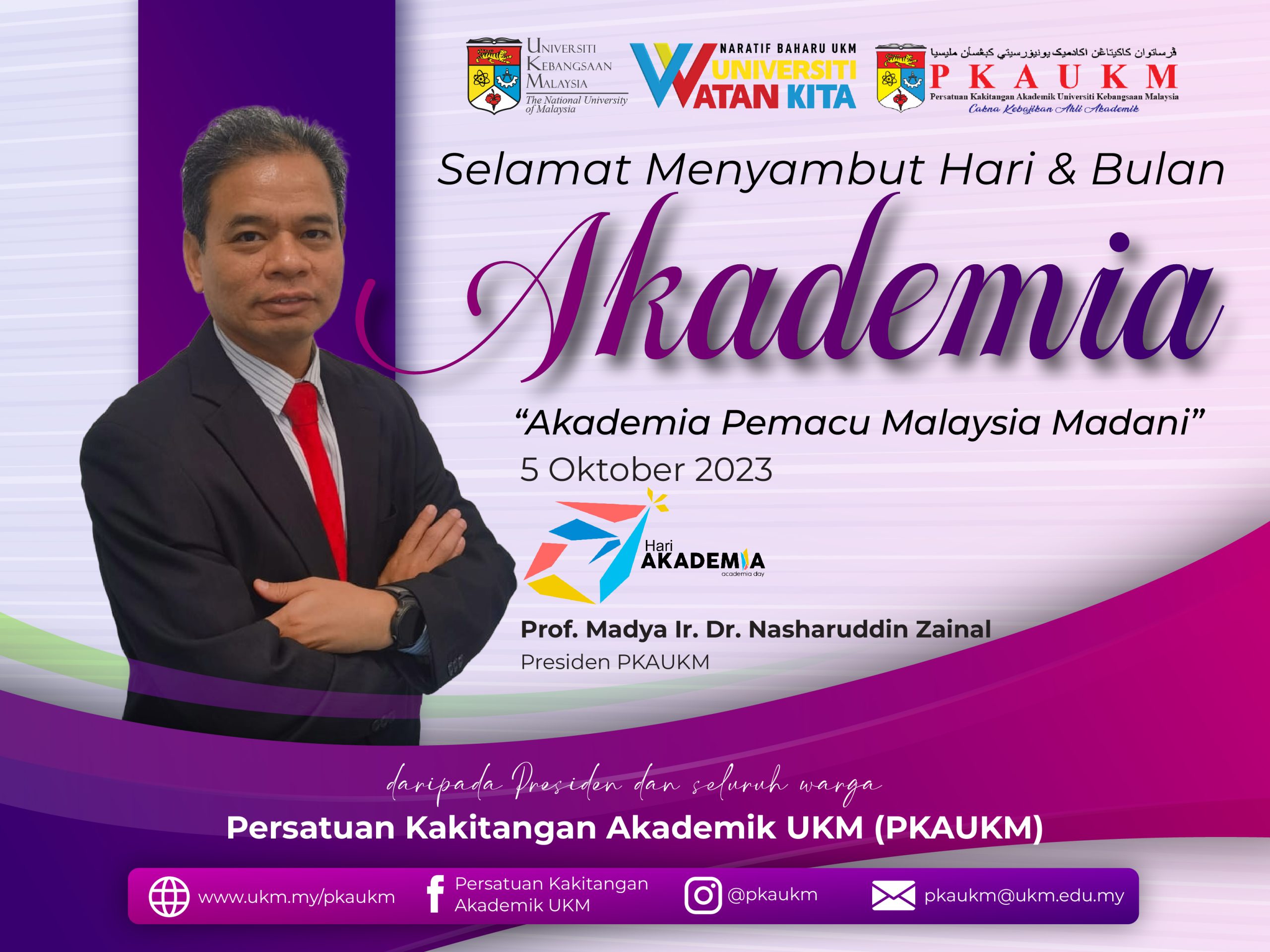 Persatuan Kakitangan Akademik UKM (PKAUKM) mengucapkan Selamat Menyambut Hari dan Bulan Akademia 2023.