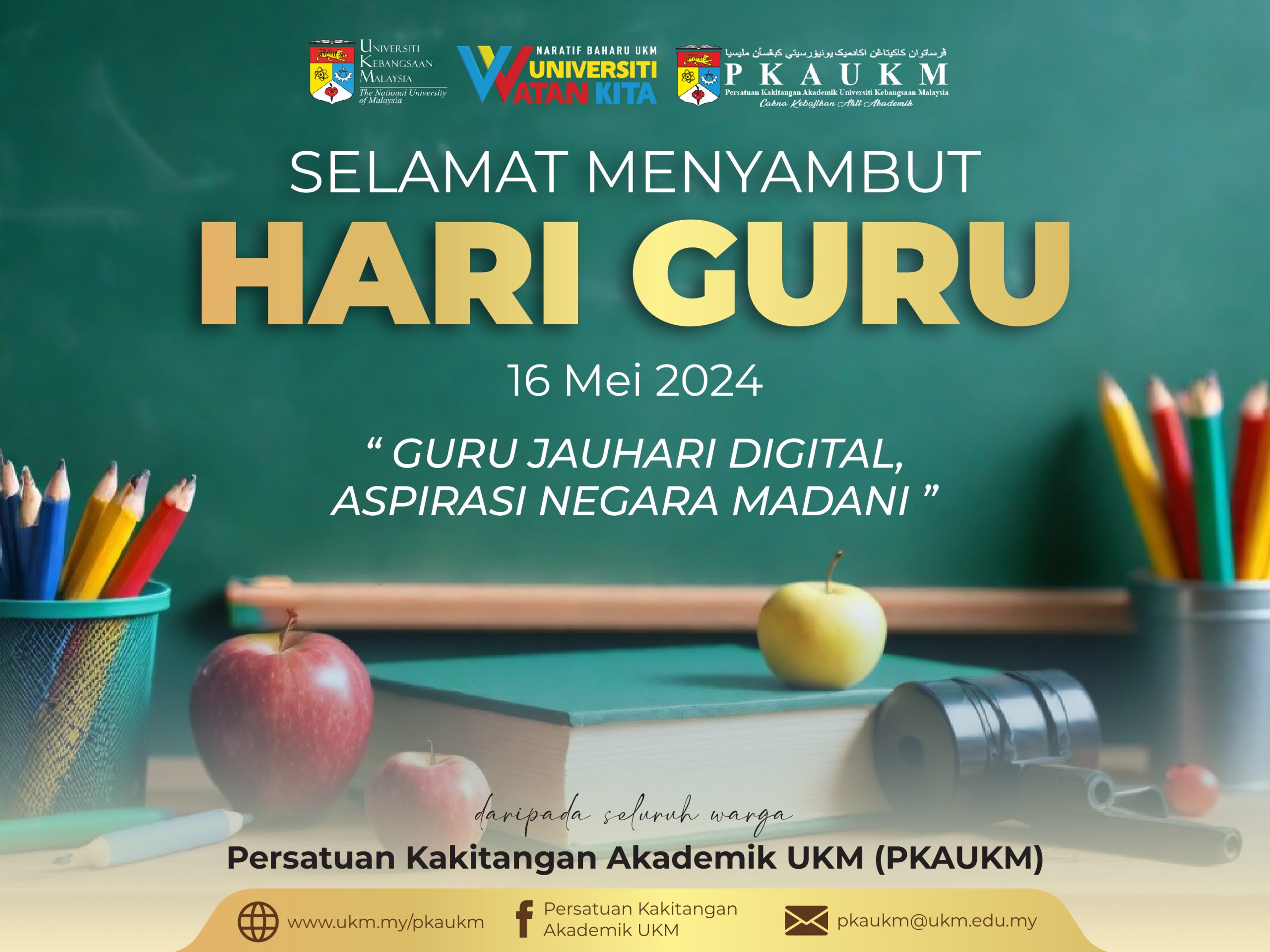 Persatuan Kakitangan Akademik UKM (PKAUKM) mengucapkan Selamat Menyambut Hari Guru 2024.