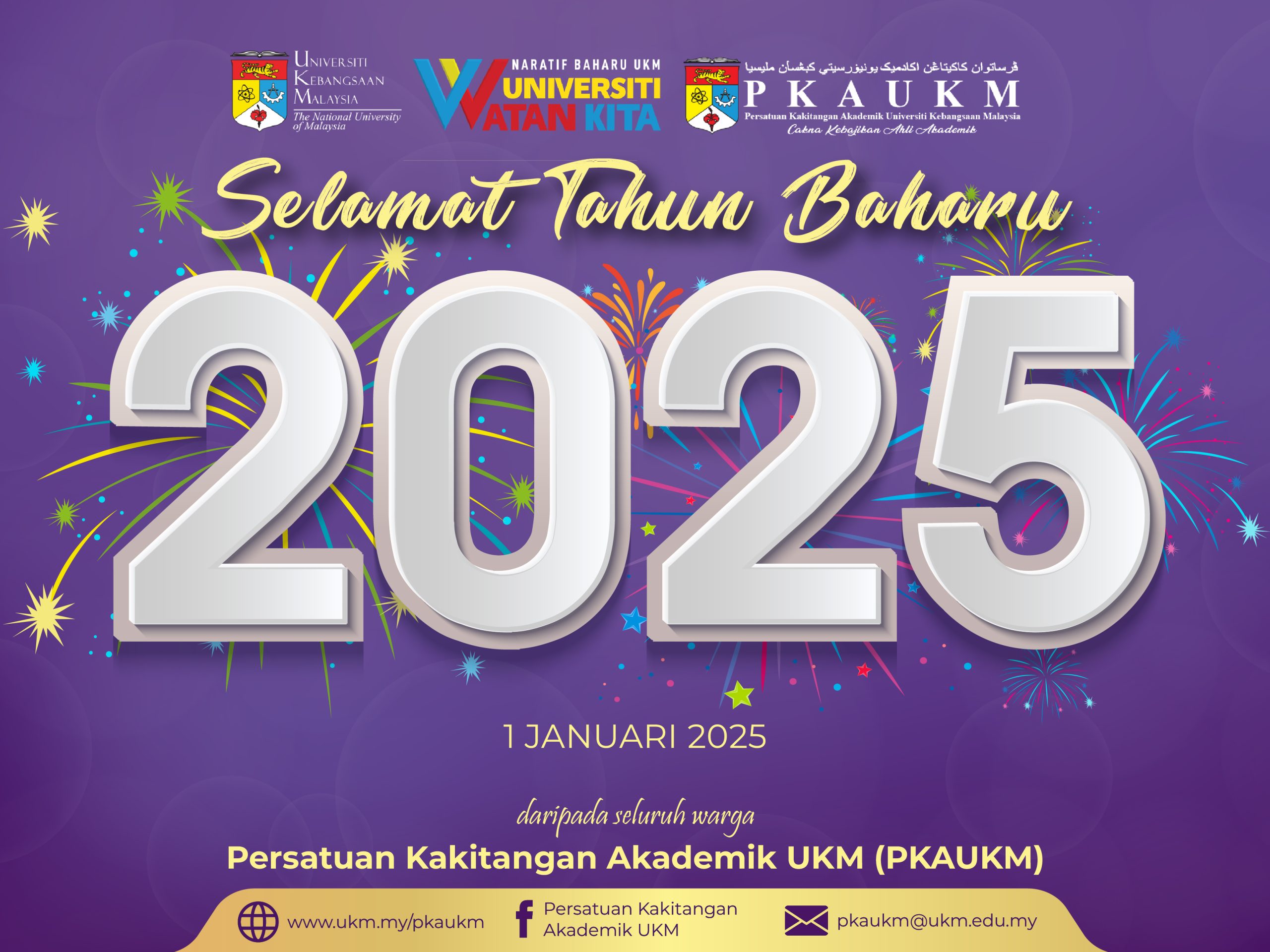 Persatuan Kakitangan Akademik UKM (PKAUKM) mengucapkan Selamat Menyambut Tahun Baharu 2025.