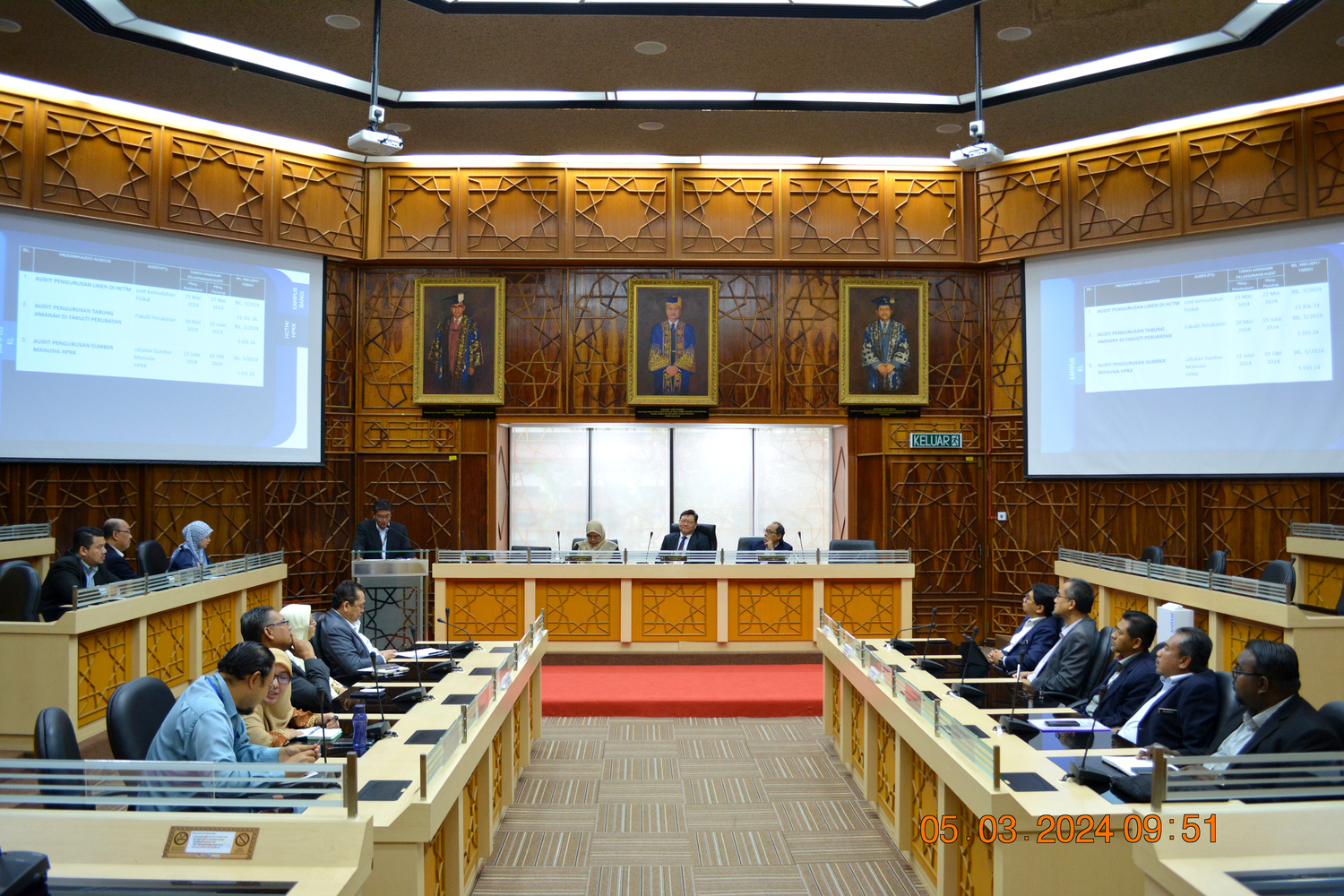 Majlis dimulakan dengan kata-kata aluan dan pengenalan ringkas mengenai Unit Audit Dalam oleh Ketua Unit Audit Dalam UKM, disusuli taklimat dan harapan dari Pengerusi Jawatankuasa Audit UKM terhadap auditi tahun ini. Kemudian sekali lagi Ketua Unit Audit Dalam UKM menyenaraikan program pengauditan bagi tahun 2024 dan prosedur pengauditan bagi memberi sedikit pemahaman kepada auditi. Pada majlis ini, UAD mengambil peluang memperkenalkan Dashboard UAD UKM yang dinamakan Sistem Pengauditan Audit Dalam (SPAD) yang julung kalinya akan digunapakai bagi sesi pengauditan tahun 2024. Majlis diakhiri dengan sesi soal jawab.