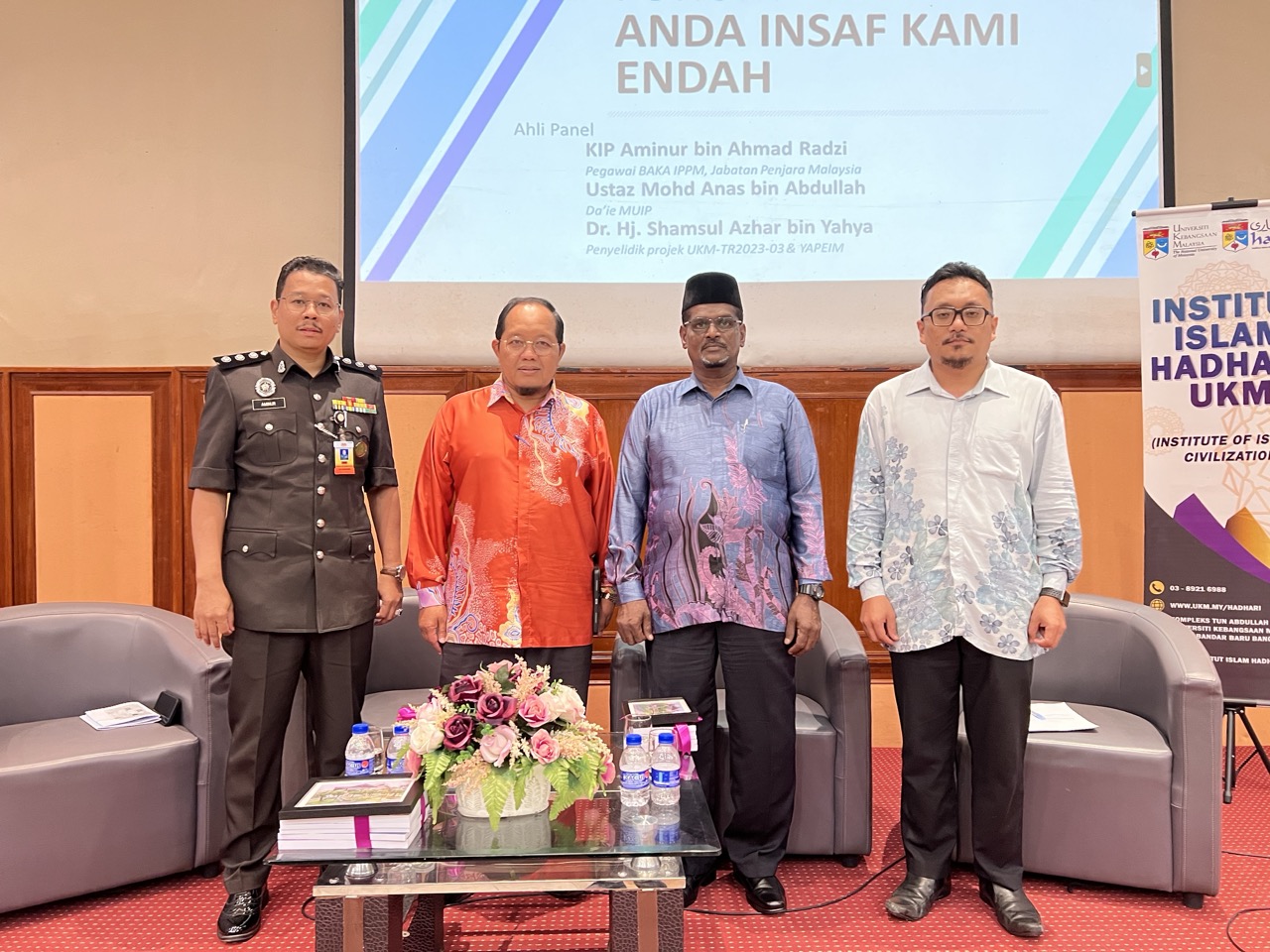 Alhamdulillah, Ahli Projek Penyelidikan (UKM-TR2023-03) dengan kerjasama Institut Islam Hadhari, UKM, Bahagian Agama dan Kaunseling (BAKA), Jabatan Penjara Malaysia serta Pejabat Agama Islam Daerah Hulu Langat telah berjaya menganjurkan FORUM ANDA INSAF KAMI ENDAH pada 27 Feb 2025 bertempat di DK Kompleks Tun Abdullah Mohd Salleh berhadapan bangunan Institut Islam Hadhari, UKM.