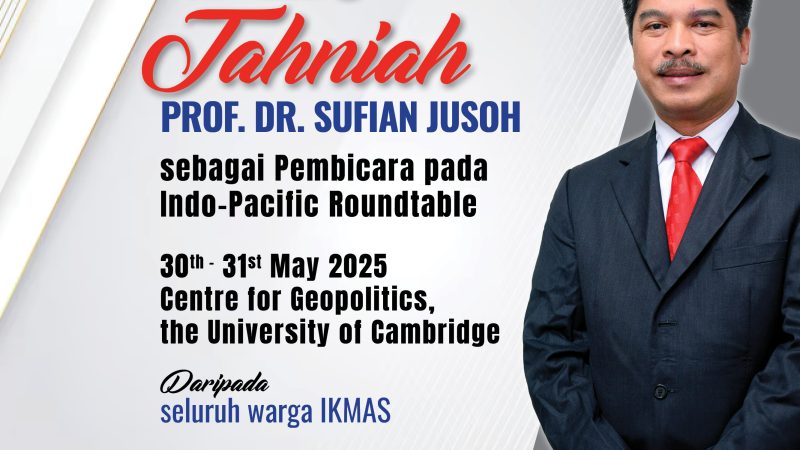 Tahniah kepada Prof Dr Sufian Jusoh, sebagai Pembicara pada Indo-Pacific Roundtable 30th-31st May, Centre for Geopolitics, the University of Cambridge