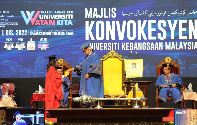Lee yang merupakan penerima Anugerah Pelajaran DiRaja (Pingat Emas) menzahirkan rasa syukur di atas penganugerahan yang diterima olehnya pada sidang pertama majlis konvokesyen UKM kali ke-50.