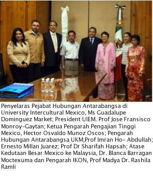 TOLUCA, MEXICO, 18 Mei 2012 – Program Perkongsian Mobiliti Global UKM begitu mengkagumkan Universidad Intercultural de Estado Mexico (UIEM) hingga memutus melasanakan program seumpama untuk mewujudkan kefahaman terhadap rakyat aslinya.