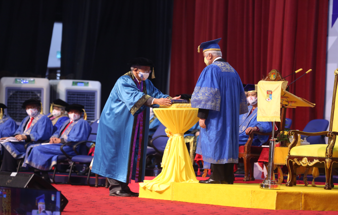 “Walaupun dunia belum pulih dengan virus ini (COVID-19), namun majlis konvokesyen ini diadakan juga, dengan 12 sidang secara bersemuka atau fizikal dengan mematuhi prosedur operasi standard (SOP) yang telah ditetapkan oleh Majlis Keselamatan Negara (MKN),” katanya.