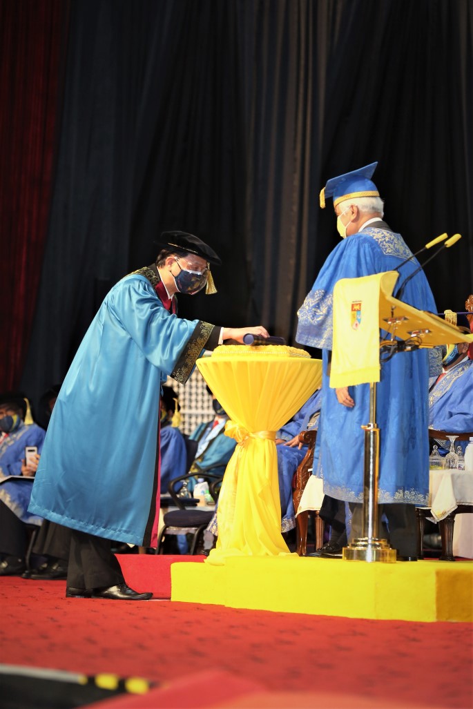 BANGI, 3 April 2021 – Ketua Pengarah Kesihatan Malaysia, Tan Sri Dato’ Seri Dr. Noor Hisham Abdullah menerima Ijazah Kehormat Doktor Falsafah (Kepimpinan dalam Kesihatan Awam) di Majlis Konvokesyen UKM Ke-48, hari ini.