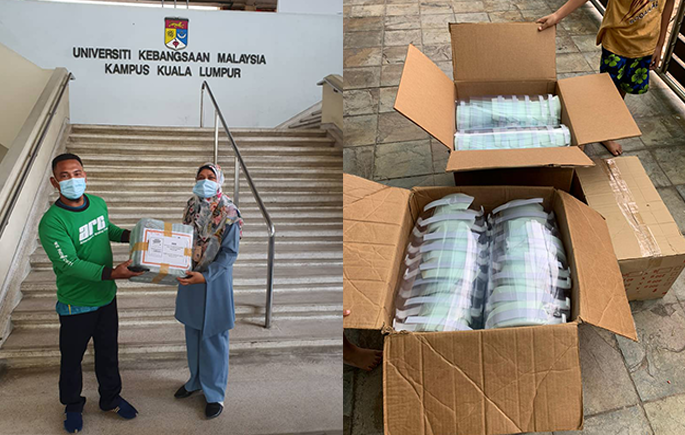 BANGI, 15 April 2020 – Warga Universiti Kebangsaan Malaysia (UKM) terus memberi sumbangan membantu barisan hadapan dengan menyediakan perisai muka (face shield) untuk diedarkan ke hospital-hospital.