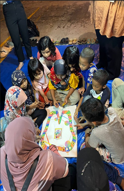 Supported by clinical staff and four students from Universitas Hasanuddin (UNHAS), activities included dental check-ups, a puppet show, coloring contests, and toothbrushing training.
