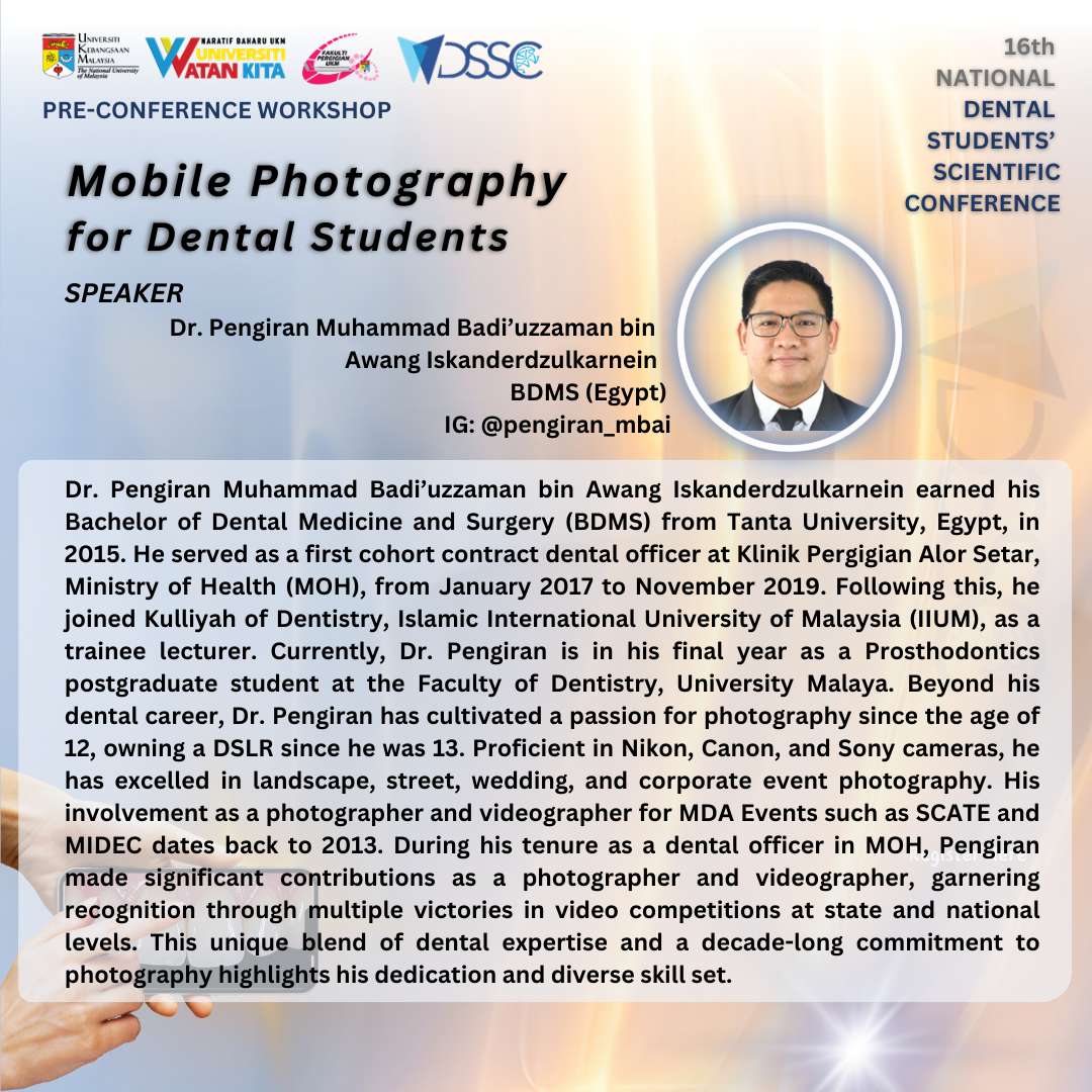 National Dental Students Scientific Conference 2024 (NDSSC 2024) Pre-Conference Workshop