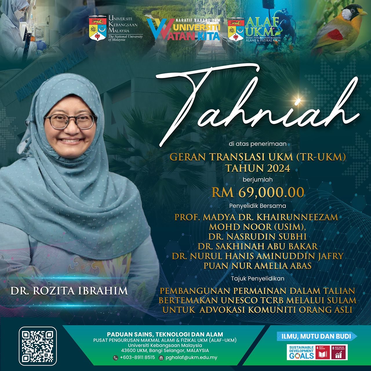 Warga ALAF-UKM mengucapkan setinggi tahniah dan syabas kepada Dr. Rozita Ibrahim, Felo Bersekutu Pusat Penyelidikan Tasik Chini, ALAF-UKM di atas kejayaan memperoleh dana (Geran Translasi UKM Tahun 2024) bagi kajian Pembangunan Permainan Dalam Talian Bertemakan UNESCO TCRB Melalui Sulam Untuk Advokasi Komuniti Orang Asli berjumlah RM69,000.Pasukan penyelidik ini turut diwakili oleh Prof. Madya Dr. Khairunneezam […]