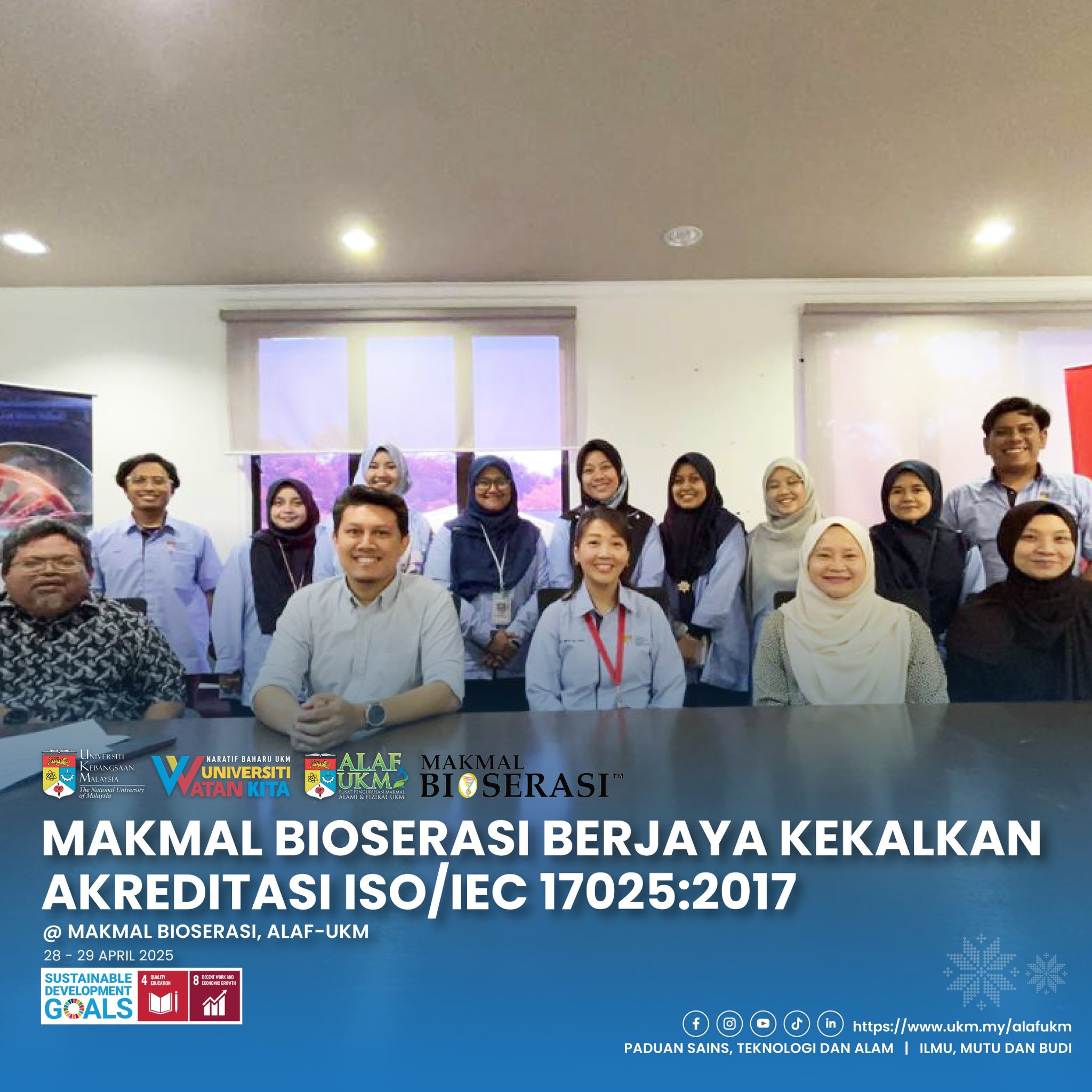 Makmal Bioserasi, ALAF-UKM sekali lagi membuktikan keunggulan perkhidmatan apabila berjaya menamatkan dengan cemerlang proses Reassessment Audit oleh Jabatan Standard Malaysia (JSM) bagi pensijilan MS ISO/IEC 17025:2017 di bawah Skim Akreditasi Makmal Malaysia (SAMM). Pengauditan yang dijalankan selama dua hari ini telah diketuai oleh Dr. Mazlan Isa (Ketua Penilai) dan Prof. Madya Dr. Mas Jaffri Masarudin […]