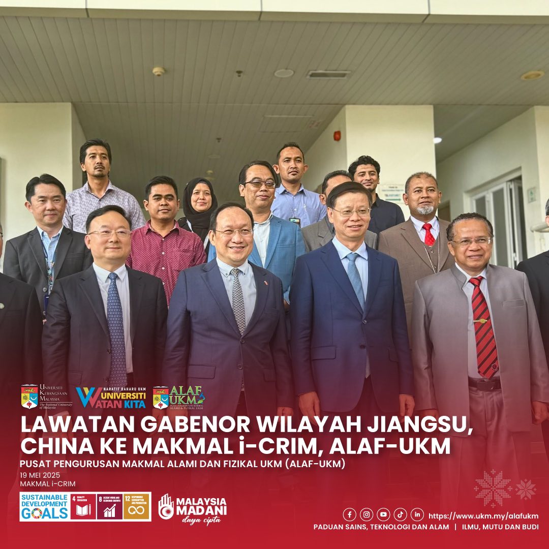 Makmal i-CRIM, ALAF-UKM telah menerima kunjungan istimewa daripada Gabenor Wilayah Jiangsu, China Mr. Xu Kunlin dalam satu lawatan rasmi ke Makmal I-CRIM. Lawatan ini merupakan sebahagian daripada inisiatif diplomasi akademik dan penyelidikan antara Malaysia dan China, yang membuka ruang baharu kepada kerjasama dua hala dalam bidang sains, teknologi serta inovasi.Delegasi diiringi oleh Prof. Datuk Dr. […]