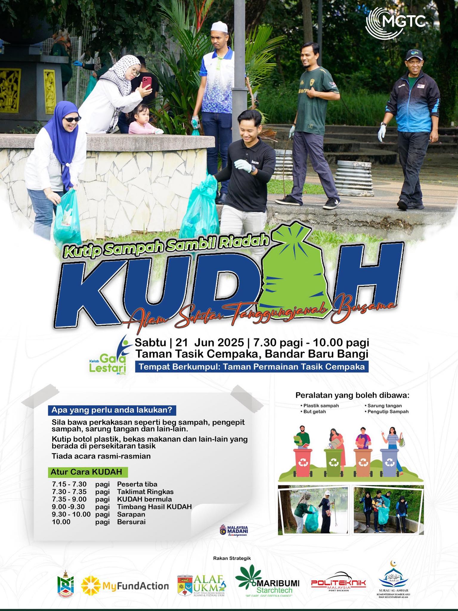 ALAF-UKM dengan Kerjasama Malaysian Green Technology And Climate Change Corporation (MGTC) akan menganjurkan Program KUDAH: Kutip Sampah Sambil Riadah bersempena sambutan Hari Alam Sekitar Sedunia 2025. Butiran program adalah seperti berikut: Tarikh: 21 Jun 2025 (Sabtu) Masa: 7.15 pagi Lokasi: Taman Tasik Cempaka, Bandar Baru Bangi (Lokas Berkumpul: https://maps.app.goo.gl/7PPSBYB6ZdVn1QEV7)Program ini merupakan inisiatif lestari bagi memupuk […]