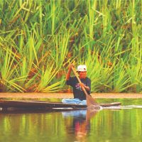 Menyelusuri Tasik Chini secara santai dengan bot.