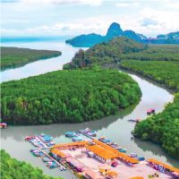 ekosistem bakau menaiki bot.