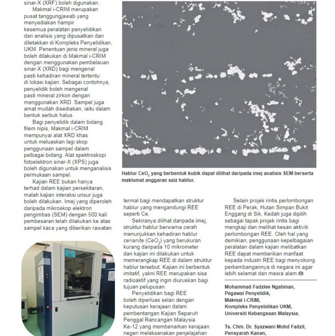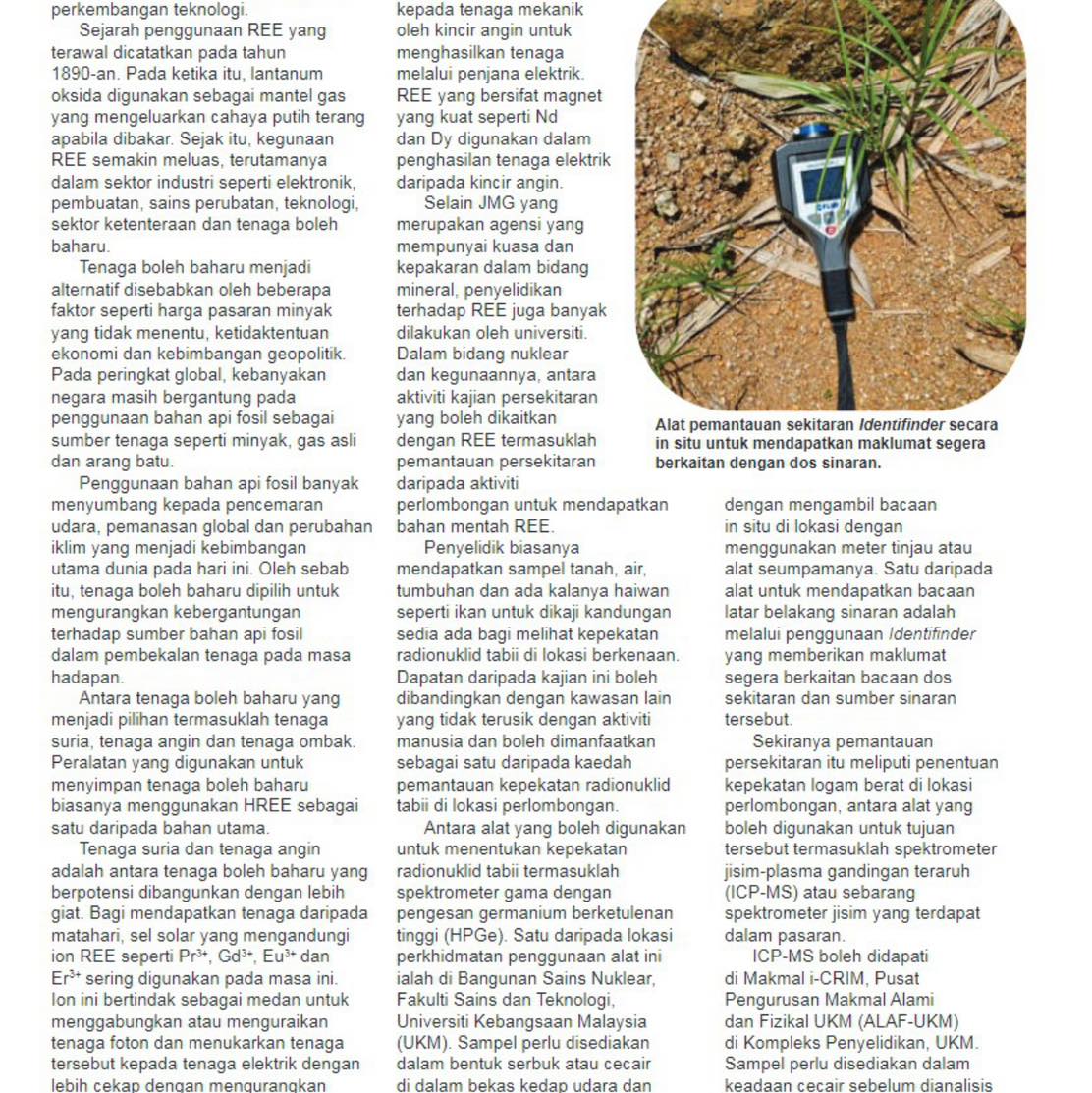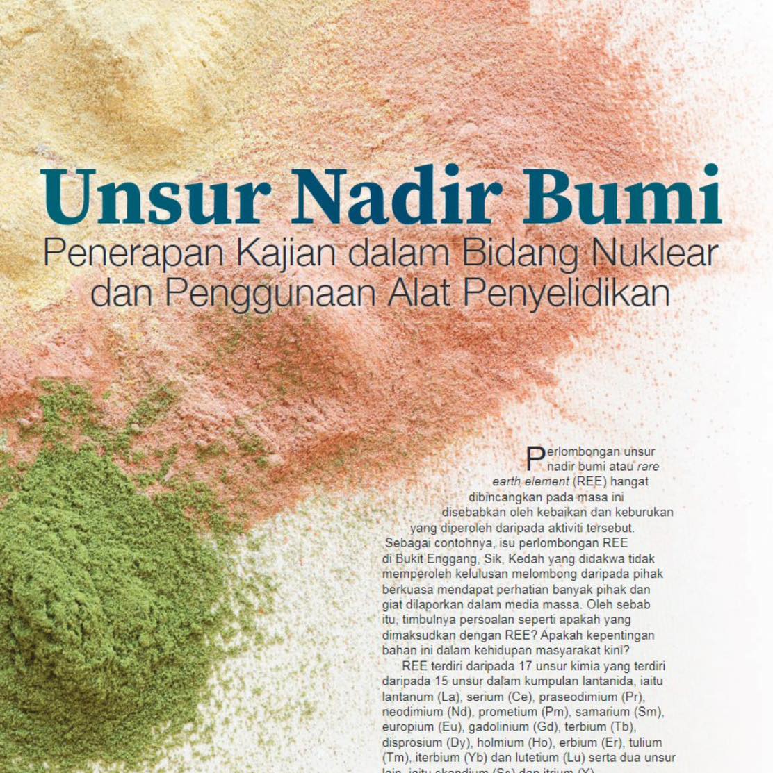 PENERBITAN ARTIKEL: UNSUR NADIR BUMI, PENERAPAN KAJIAN DALAM BIDANG NUKLEAR & PENGGUNAAN ALATAN PENYELIDIKAN