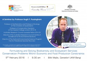 1 – A Seminar by Professor Hugh P. Possingham [The University of Queensland, Australia] [A collaboration with the Australian High Commission]