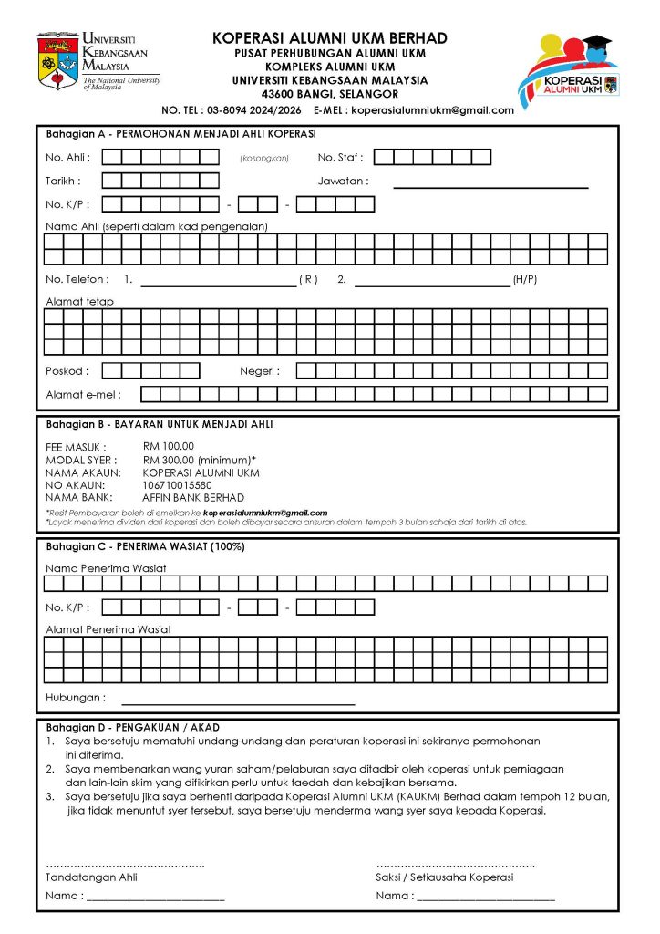 MUAT TURUN BORANG KEAHLIAN KOPERASI ALUMNI