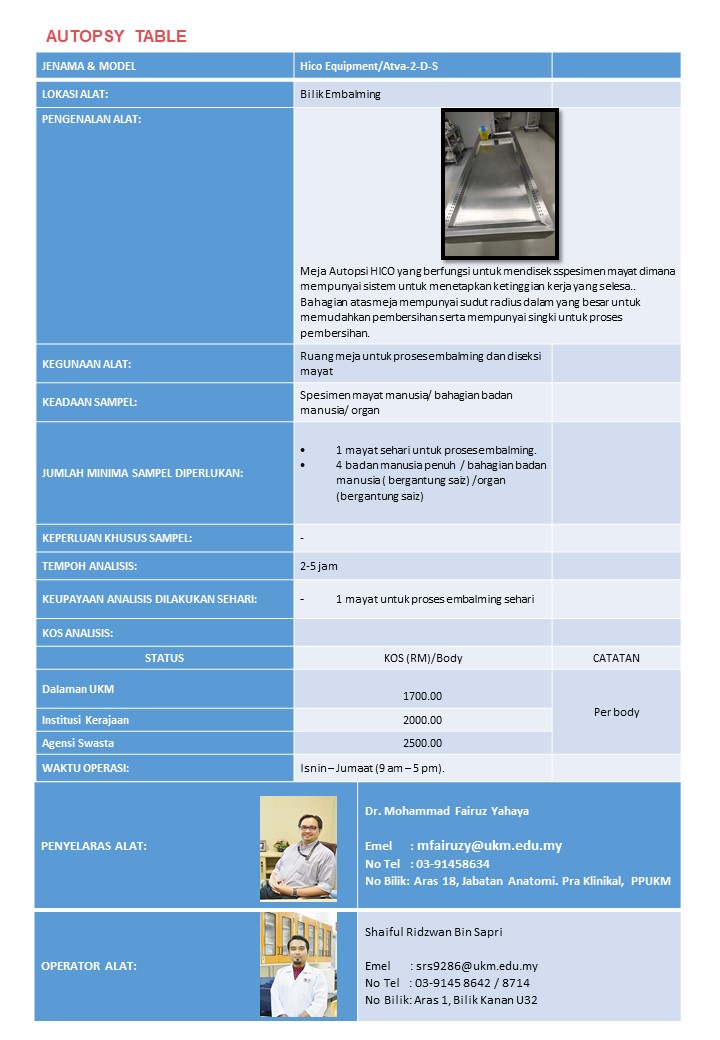 Perkhidmatan Berkaitan Penyelidikan (Tingkat 9) Pelbagai peralatan makmal yang boleh disewa disediakan di Tingkat 9, Bangunan Pra Klinikal,Fakulti Perubatan. Sila klik pada pautan Info Lanjut di bawah untuk mendapatkan maklumat terperinci mengenai peralatan dan prosedur penyewaan.