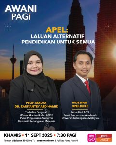 SESI PERKONGSIAN UNIT APEL PUSAT PENGURUSAN AKADEMIK UKM DI RANCANGAN AWANI PAGI BERTAJUK: “APEL: LALUAN ALTERNATIF PENDIDIKAN UNTUK SEMUA”