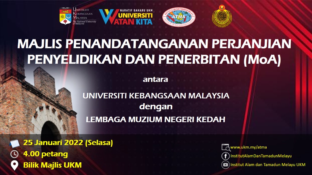 Majlis Penandatanganan Perjanjian Penyelidikan dan Penerbitan antara Universiti Kebangsaan Malaysia dengan Lembaga Muzium Negeri Kedah.