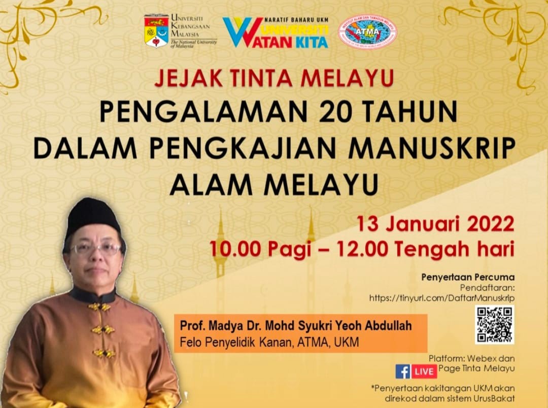 Jejak Tinta Melayu 2022 Assalamualaikum dan Salam Sejahtera, YBhg. Datuk/Dato’/Prof./Dr./Tuan/Puan, Sukacita dimaklumkan Pusat Penyelidikan Manuskrip Alam Melayu (PPMAM), Institut Alam dan Tamadun Melayu (ATMA), Universiti…