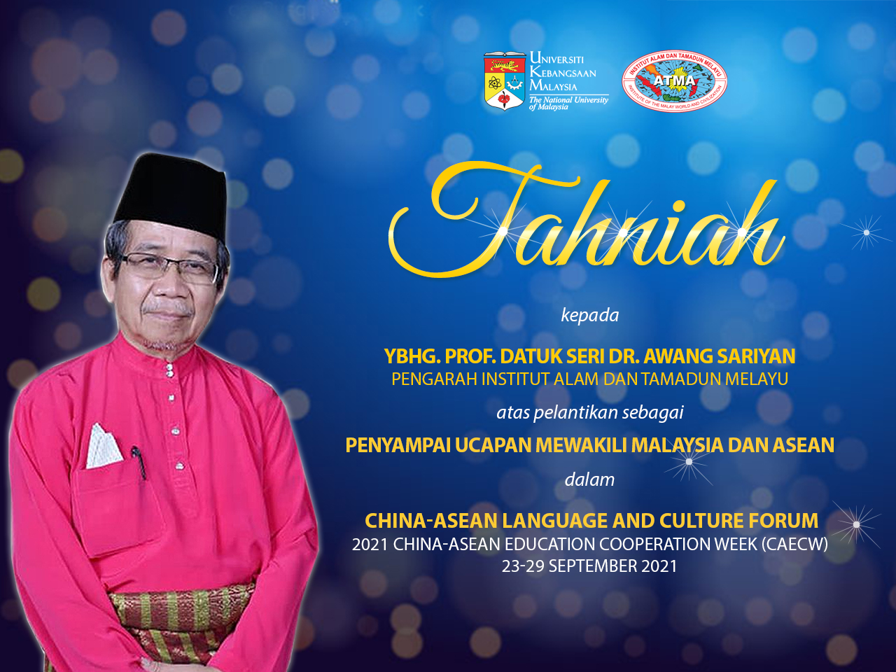 Tahniah diucapkan kepada YBhg. Prof. Datuk Seri Awang Sariyan atas pelantikan sebagai penyampai ucapan mewakili Malaysia dan ASEAN dalam China-ASEAN Language and Culture Forum, 21…