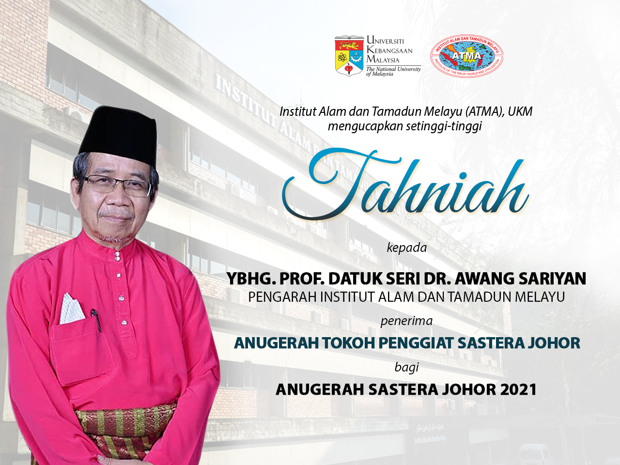 Institut Alam dan Tamadun Melayu (ATMA), UKM mengucapkan setinggi-tinggi tahniah kepada YBhg. Prof. Datuk Seri Dr. Awang Sariyan, Pengarah ATMA sebagai penerima Anugerah Tokoh Penggiat…