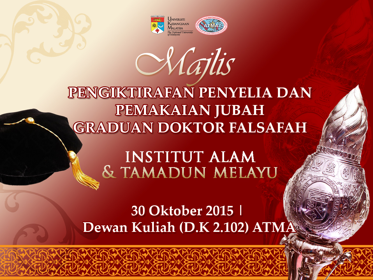 Makluman buat para graduan ATMA yang bakal dirai. Majlis Pengiktirafan Penyelia dan Pemakaian Jubah Graduan dan Doktor Falsafah ATMA akan diadakan pada 30 Oktober 2015…