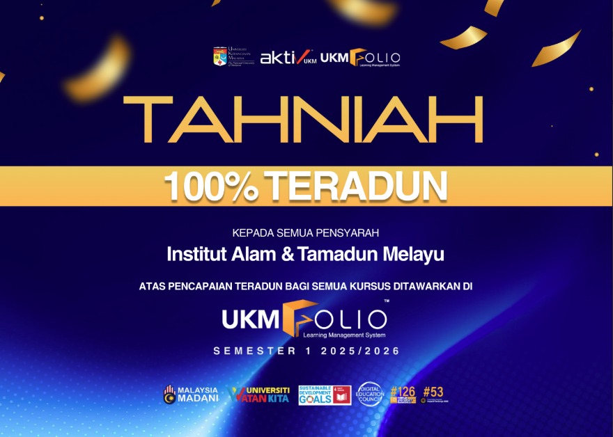 Syabas dan Tahniah! Institut Alam dan Tamadun Melayu (ATMA), UKM atas pelaksanaan 100% Pembelajaran Teradun (Blended Learning) bagi semua kursus yang yang ditawarkan dalam UKM Folio (Learning Management System) Semester 1 Sesi 2025/2026.