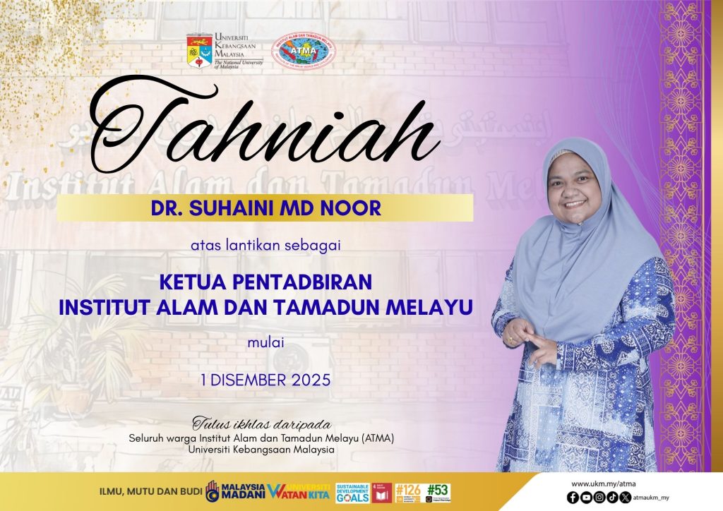 Tahniah! Dr. Suhaini Md Noor, atas lantikan sebagai Ketua Pentadbiran ATMA mulai 1 Disember 2025