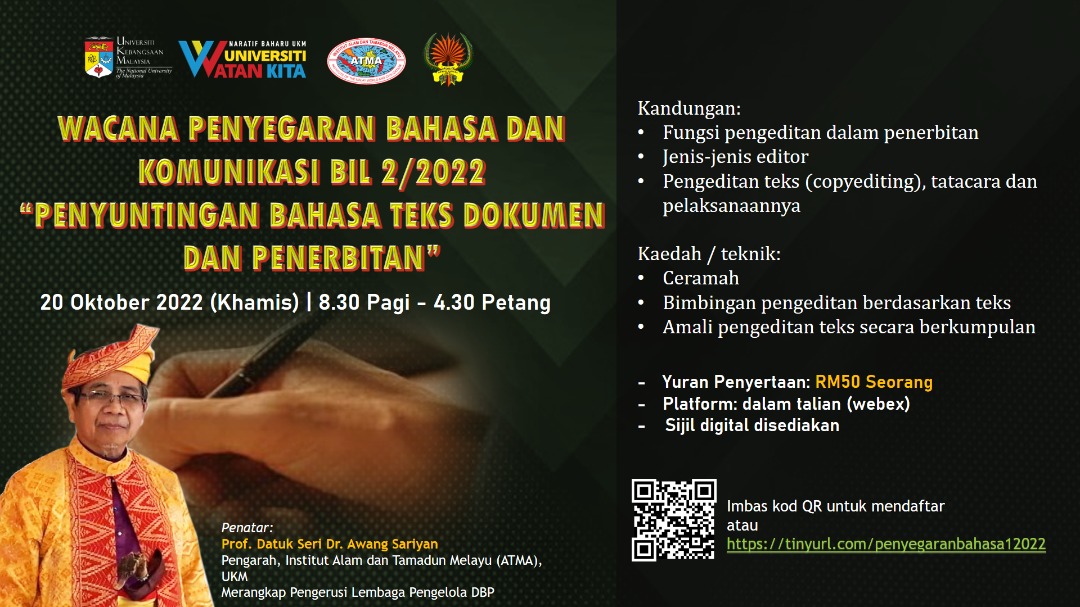 Undangan ke Wacana Penyegaran Bahasa & Komunikasi Bil. 2/2022: Penyuntingan Bahasa Teks Dokumen dan Penerbitan
