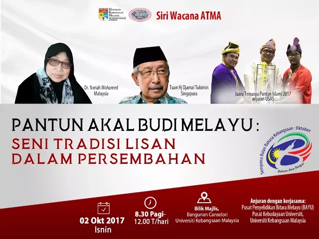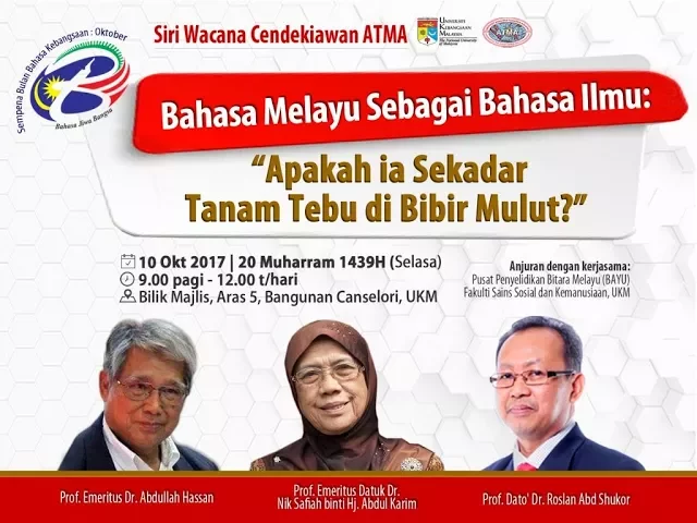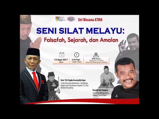 Video Siri Wacana ATMA: Seni Silat Melayu dan Majlis Pelancaran Buku Silat Cekak Silat Akademik Siri Wacana Cendekiawan ATMA: Bahasa Melayu Sebagai Bahasa Ilmu: Apakah Ia Sekadar Tanam Tebu Di Bibir Mulut? Siri Wacana ATMA: Pantun Akal Budi Melayu Wacana ATMA Seni Silat Melayu Falsafah, Sejarah dan Amalan V2 Wacana ATMA- Seni Silat Melayu: Falsafah, Sejarah dan Amalan Wacana Cendekiawan ATMA: 60 Tahun Merdeka: Bahasa Melayu- Aper bende lagi tuw? Apakah Kuala Lumpur dibuka oleh Yap Ah Loy? Bicara Persada ke-37: Penguasaan Bahasa Melayu dalam Sektor Awam. Boleh Dikompromi? Anugerah Bitara UKM 2017, Prof. Dr. Nor Hashimah Jalaluddin Anugerah Bitara UKM 2017, Prof. Dr. Zulkifley Catatan Lama Catatan Baru