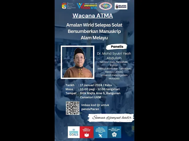 Video ‘Raya Kedua’, video pendek ATMA bersempena menyambut Hari Raya Aidilfitri 1445H/2024M Wacana ATMA (Siri 1/2024): Amalan Wirid selepas Solat bersumberkan Manuskrip Alam Melayu Syarahan Akademik ATMA Siri 1/2024: Malay Politics Post GE15: Madani, and Political Islam MAJALAH3 TV3: Wanita Nenggiri 14,000 Tahun Video Institut Alam dan Tamadun Melayu 2023 Video Korporat Institut Alam dan Tamadun Melayu 2022 Syarahan Raja Ali Haji ke-21, 2023 Symposium on Chinese Trade Ceramics: Focus on Qingbai Ware ASTRO AWANI Pagi: Memetakan kembali jejak prasejarah melalui penyelidikan Astro AWANI: Seni bina tradisi: Ukiran di sesebuah rumah gambarkan status pemilik Catatan Lama Catatan Baru