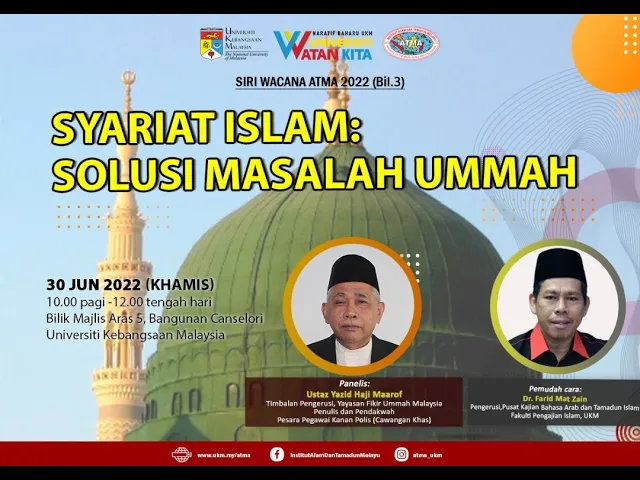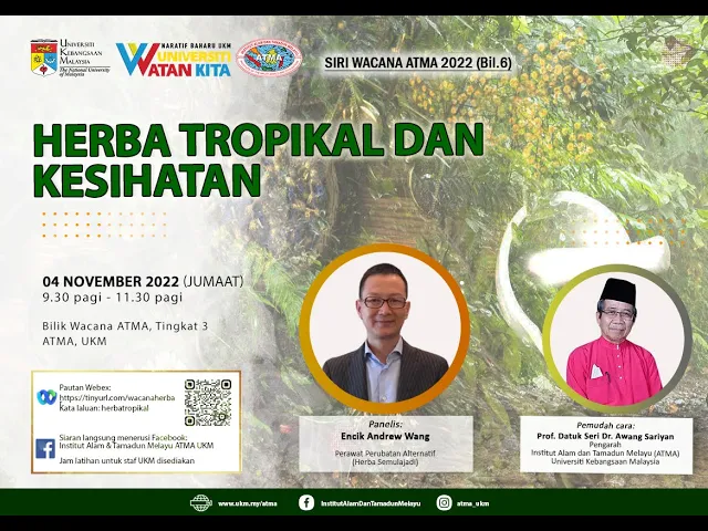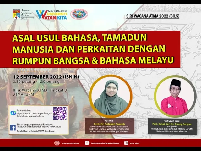 Video ASTRO AWANIpagi: Keunikan seni bina rumah Melayu tradisional BERNAMA TV: Jumpaan rangka manusia prasejarah di Gua Keledung Kecil Lembah Nenggiri, Ulu Kelantan, Kelantan Juita Raya ATMA 2023 KIKBM, ATMA Raya 2023 RTM: Motif Melayu Pujangga Puri Siri Wacana ATMA 2022 (Bil.6): Herba Tropika dan Kesihatan Penerima Ijazah Kehormat Persuratan Melayu, Datuk Dr. Siti Zainon Ismail Nazam Kanz-Ula Siri Wacana ATMA (Bil.5): Asal Usul Bahasa, Tamadun Manusia dan Perkaitan dengan Rumpun Bangsa & Bahasa Melayu Siri Wacana ATMA 2022 (Bil.3): Syariat Islam: Solusi Masalah Ummah Catatan Lama Catatan Baru