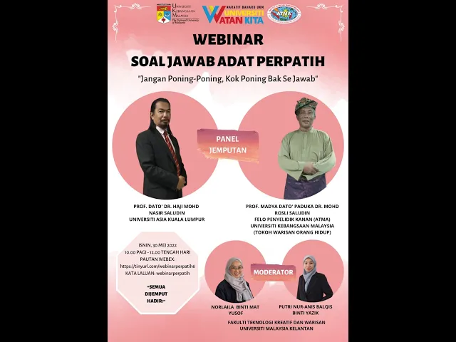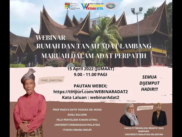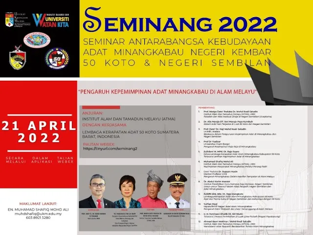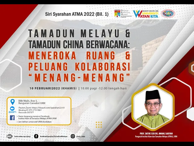 Video Siri Wacana ATMA 2022 (Bil.2): Keantarabangsaan Bahasa Melayu: Bukti Sejarah Webinar Perpatih: Soal Jawab Adat Perpatih: “Jangan poning-poning, Kok Poning Bak Se Jawab” Webinar Perpatih: Kuala Pilah Bandar Paling Bahagia di Dunia Webinar Perpatih: Rumah dan Tanah Adat Lambang Maruah dalam Adat Perpatih Webinar Perpatih: Tanah Adat sebagai Tiang Seri dalam Adat Perpatih Negeri Sembilan Nostalgia Raya ATMA 2022 Seminar Antarabangsa Kebudayaan Adat Minangkabau Negeri Kembar 50 Koto Dan Negeri Sembilan kali ke-2 (SEMINANG 2) Siri Wacana Falak ATMA 2022 (Bil.2): Sains Takwim Hijrah Sejagat Siri Wacana Falak ATMA 2022 (Bil.1): Ke Arah Penyatuan Takwim Hijrah Sejagat Siri Syarahan ATMA 2022 (Bil.1): Tamadun Melayu & Tamadun China Berwacana: Meneroka Ruang & Peluang Kolaborasi “Menang-Menang” Catatan Lama Catatan Baru