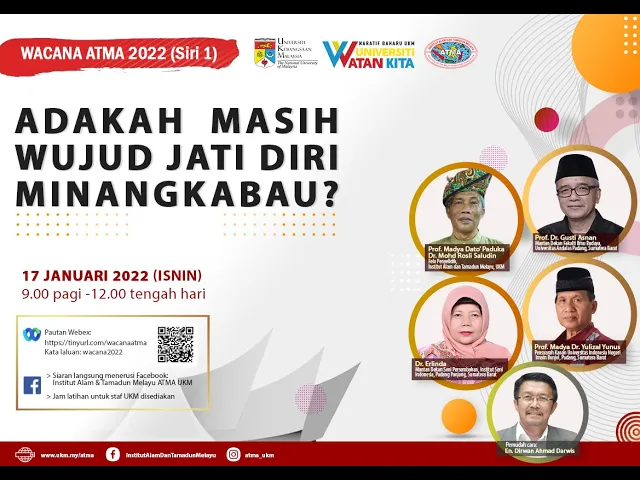 Video Wacana ATMA 2022 (Siri 1): Adakah Masih Wujud Jati Diri Minangkabau? Jejak Tinta Melayu: Pengalaman 20 Tahun Dalam Pengkajian Manuskrip Alam Melayu Institut Alam dan Tamadun Melayu (ATMA) 2021 Webinar Bahasa Melayu dalam Pelestarian Budaya Keilmuan Prakarsa Falsafah UKM dan Bahasa Melayu Siri Wacana ATMA (Bil. 12/2021) – Kesusasteraan: Antara Tasawur Islami dengan Paradigma Barat Siri Wacana ATMA (Bil. 11/2021): Bahasa Kebangsaan dalam Kerangka Undang-Undang Malaysia Siri Wacana ATMA (Bil.10/2021): Sudah Jawa atau Belum Jawa? Siri Syarahan ATMA (Bil.2): Sumbangan Bidang Arkeologi Terhadap Alam & Tamadun Melayu Siri Syarahan ATMA (Bil.1): Epistemologi Linguistik dalam konteks Falsafah & Pemikiran Alam Melayu Catatan Lama Catatan Baru