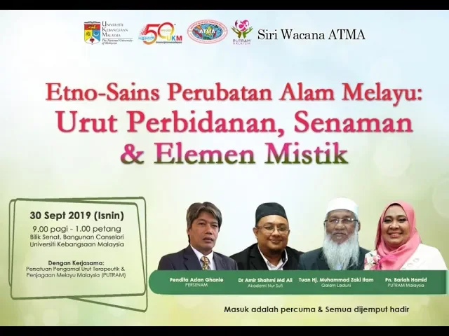 Video Siri Wacana ATMA: Sejarah dan Perkembangan Muzik Kontemporari Nusantara Wacana Cendekiawan ATMA: Air dalam Minda Melayu Siri Wacana Cendekiawan ATMA: Pola Spina Bifida Seumur Hidup dalam Alam Melayu: Pendidikan, Pencegahan & Perlindungan Video ATMA 2019 Public Lecture: Identifying Batiks for the Malay World Siri Wacana ATMA: Etno-Sains Perubatan Alam Melayu: Kaedah & Rawatan Efektif, Pesakit Positif Siri Wacana ATMA: Persamaan Identiti Antara 50 Koto & Negeri Sembilan: Sejarah, Budaya & Warisan Siri Wacana ATMA: Etno-Sains Perubatan Alam Melayu: Urut Perbidanan, Senaman & Elemen Mistik Siri Wacana Cendekiawan ATMA: Adab & Adat dalam Panggilan Gelaran Ahli dalam Keluarga Melayu, Cina & India Sanggar Buku ATMA_ Kedaulatan Raja-Raja Melayu: Jurispuden, Governan & Prinsip Perlembagaan Persekutuan Catatan Lama Catatan Baru