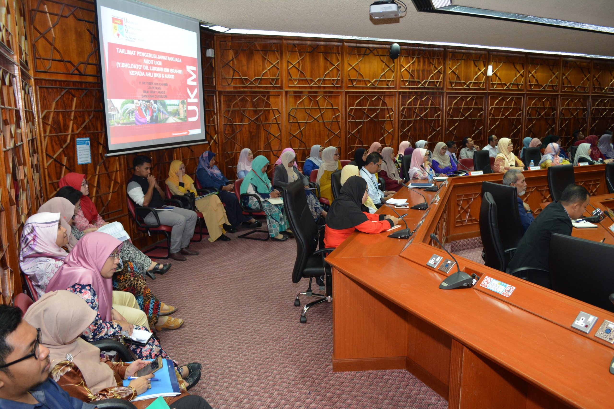 Taklimat Pengerusi Jawatankuasa Audit UKM (YBhg. Dato’ Dr. Lukman Bin Ibrahim) Kepada Ahli Mesyuarat Ketua-Ketua Bahagian Dan Auditi Tahun 2018 Hingga Tahun 2020. 11/10/2018 |