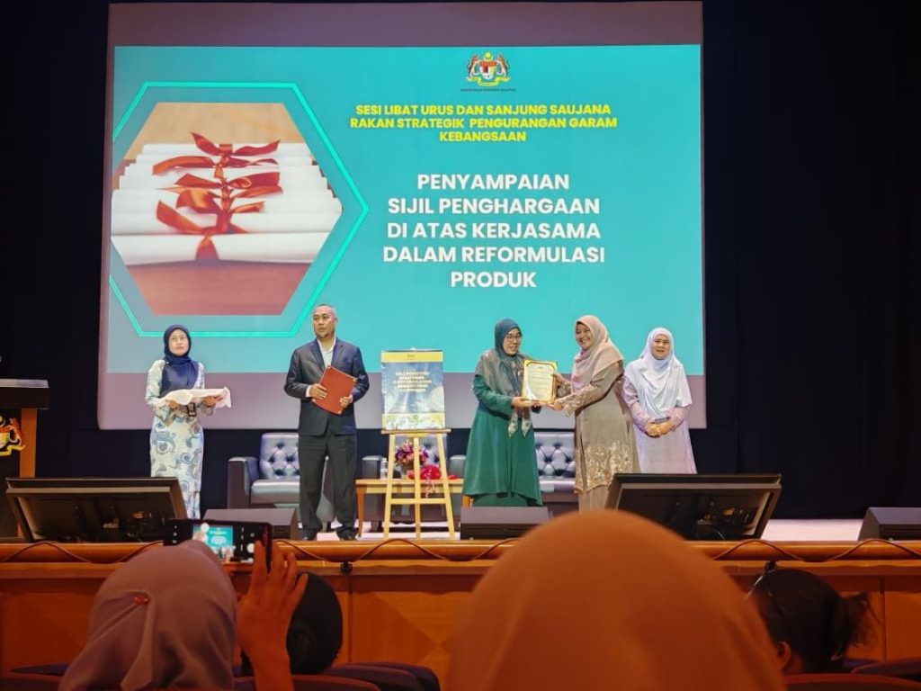 Majlis turut menyaksikan penyerahan sijil penghargaan kepada tujuh institusi penyelidikan yang menyertai Konsortium Penyelidikan Strategi Pengurangan Garam dan lima industri makanan yang terlibat dalam reformulasi produk kicap menerusi projek terdahulu, serta tujuh industri yang baru menyertai projek bagi reformulasi beberapa produk lagi termasuk mi segera, marjerin, sup dan stok sup, daging terproses, sos tomato/ cili, daging dalam tin dan ikan dalam tin.