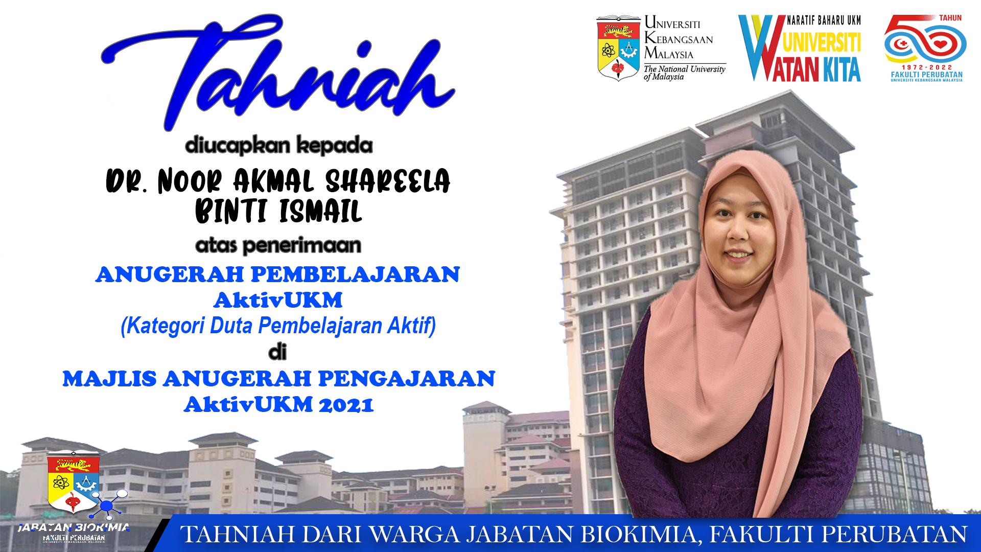 PENERIMA ANUGERAH PENGAJAR CEMERLANG (PRAKLINIKAL) – ANUGERAH SANJUNGAN KENCANA 2022