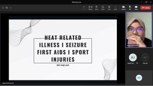 Kursus Persediaan SUKEM ini merupakan latihan untuk mempersiapkan ahli BSMM untuk bertugas semasa SUKEM. Pada 27 Oktober 2023, pada pukul 8.30 malam kursus dimulakan secara atas talian dengan menggunakan platform MS TEAMS. Topik pertama yang telah diajarkan oleh Dr Najid (Pegawai Perubatan PKU) berkenaan dengan Tidak Sedarkan Diri (Pengsan). Kemudian disambung dengan topik Luka dan Pendarahan oleh Dr Lubaina (Pegawai Perubatan PKU).Kursus pada hari pertama pada pukul 10.30 malam.